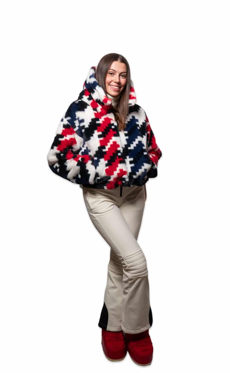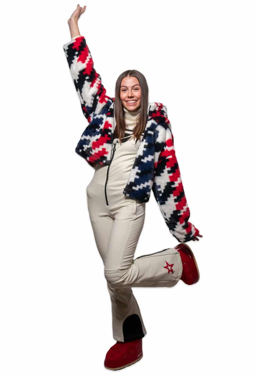 Pantalón Peto de esquí Perfect Moment JG para mujer. Estos pantalones te mantienen cómodamente seca gracias a su acabado impermeable. Los tirantes ajustables, el doble cierre, el forro polar térmico y la pernera acampanada con polainas para la nieve completan esta prenda elegante y funcional.
